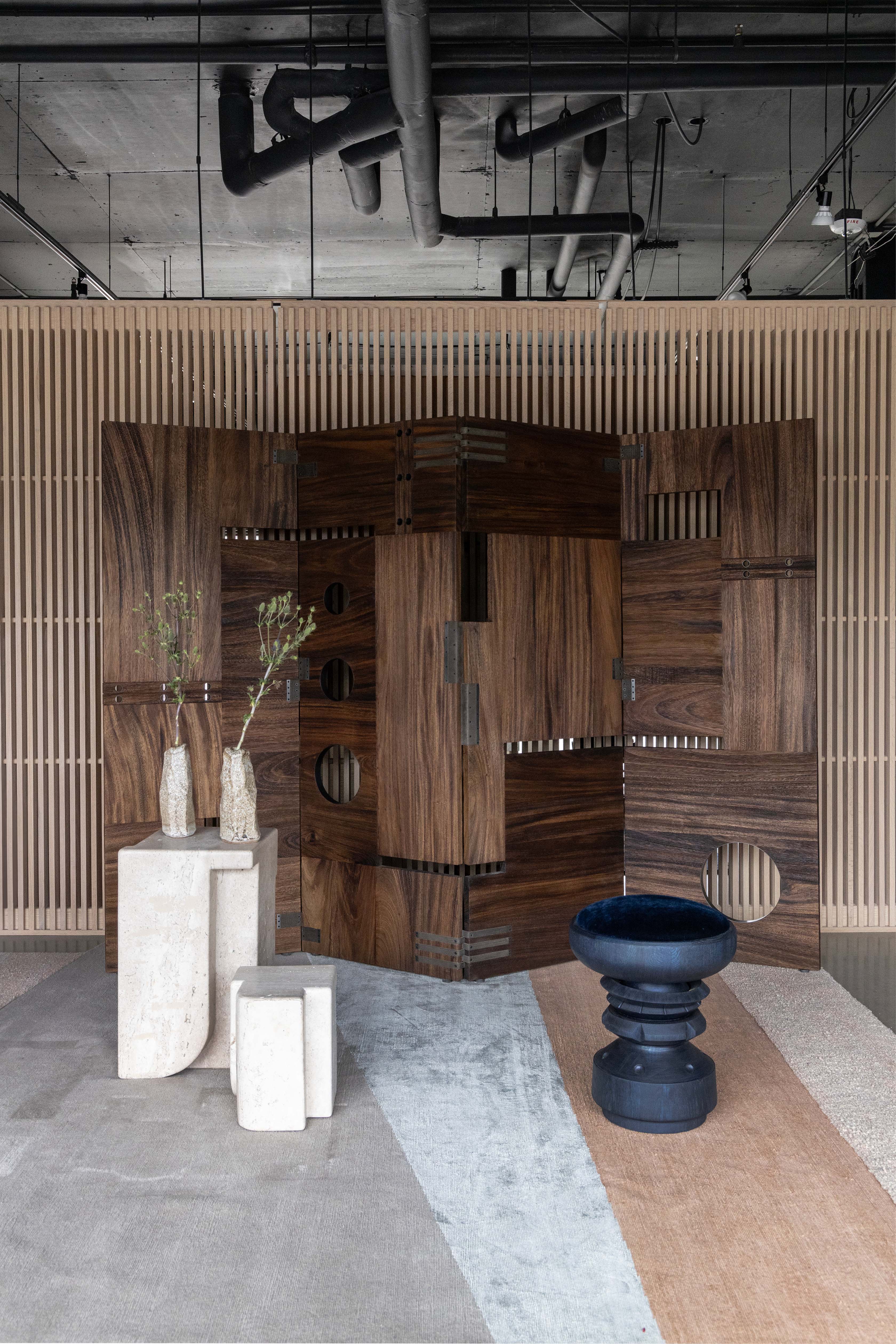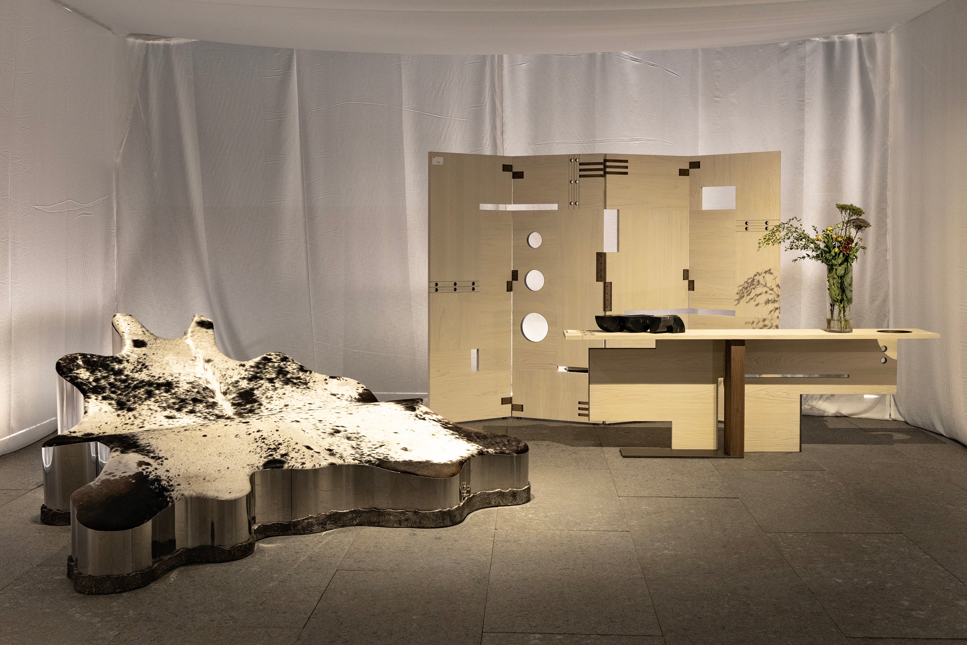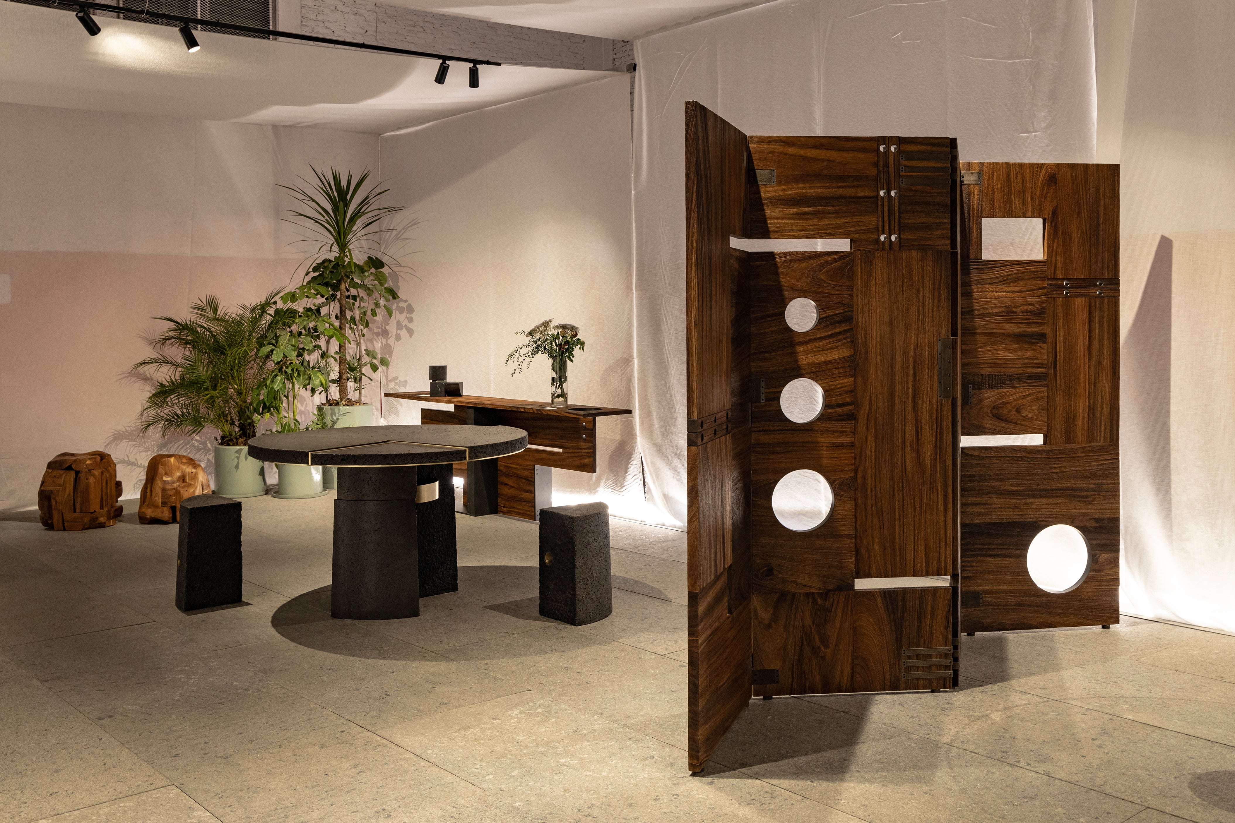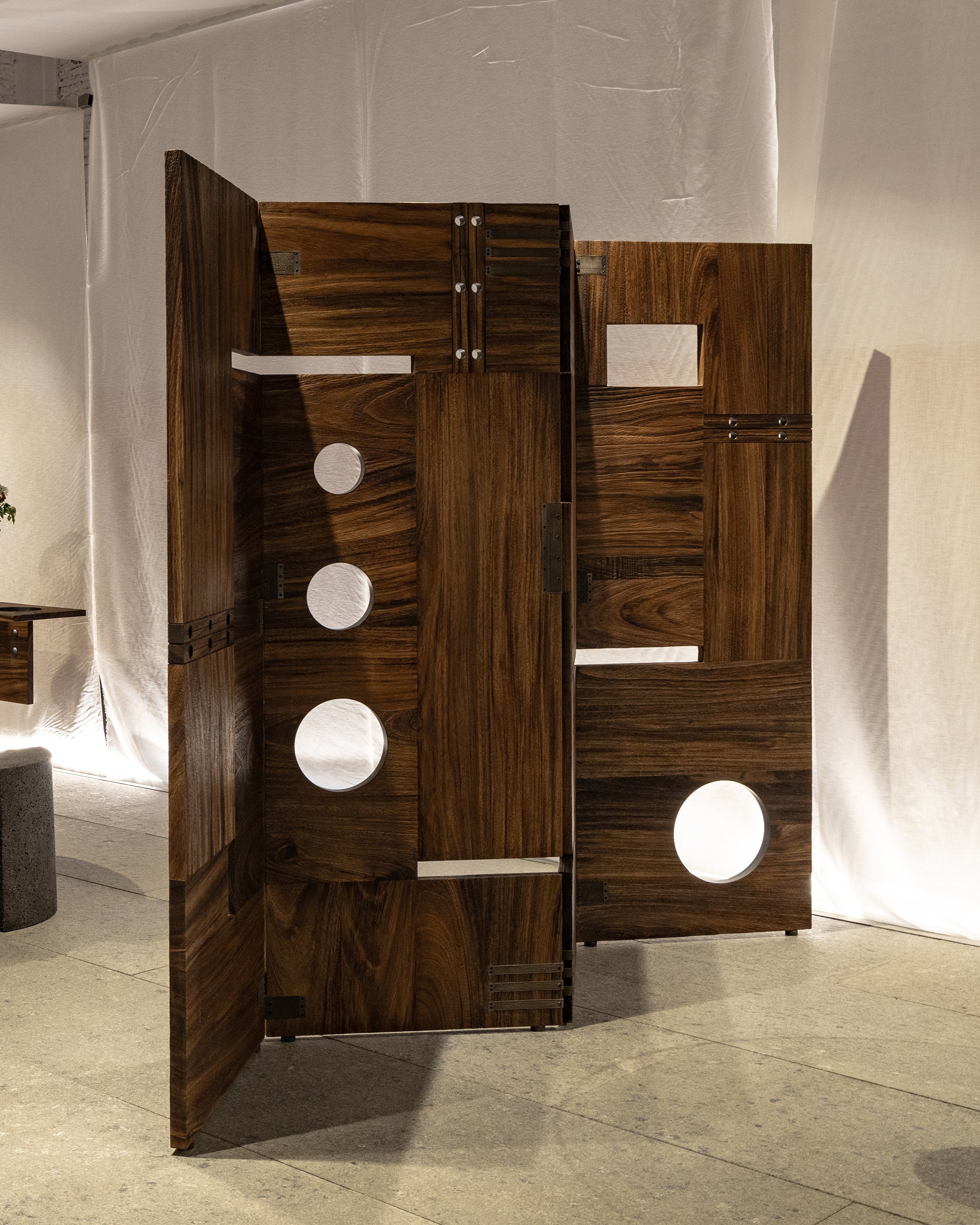 Folding screen by Simon Hamui emerges as a complement to the Lú console, which shares a connection with the work of the prominent Mexican artist Rufino Tamayo and his profound interest in dualities.