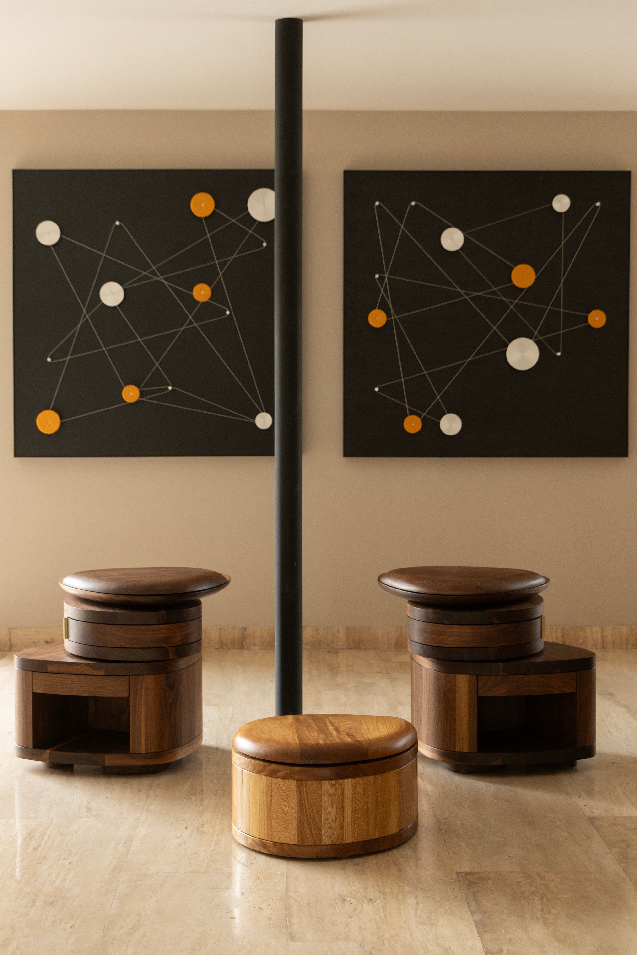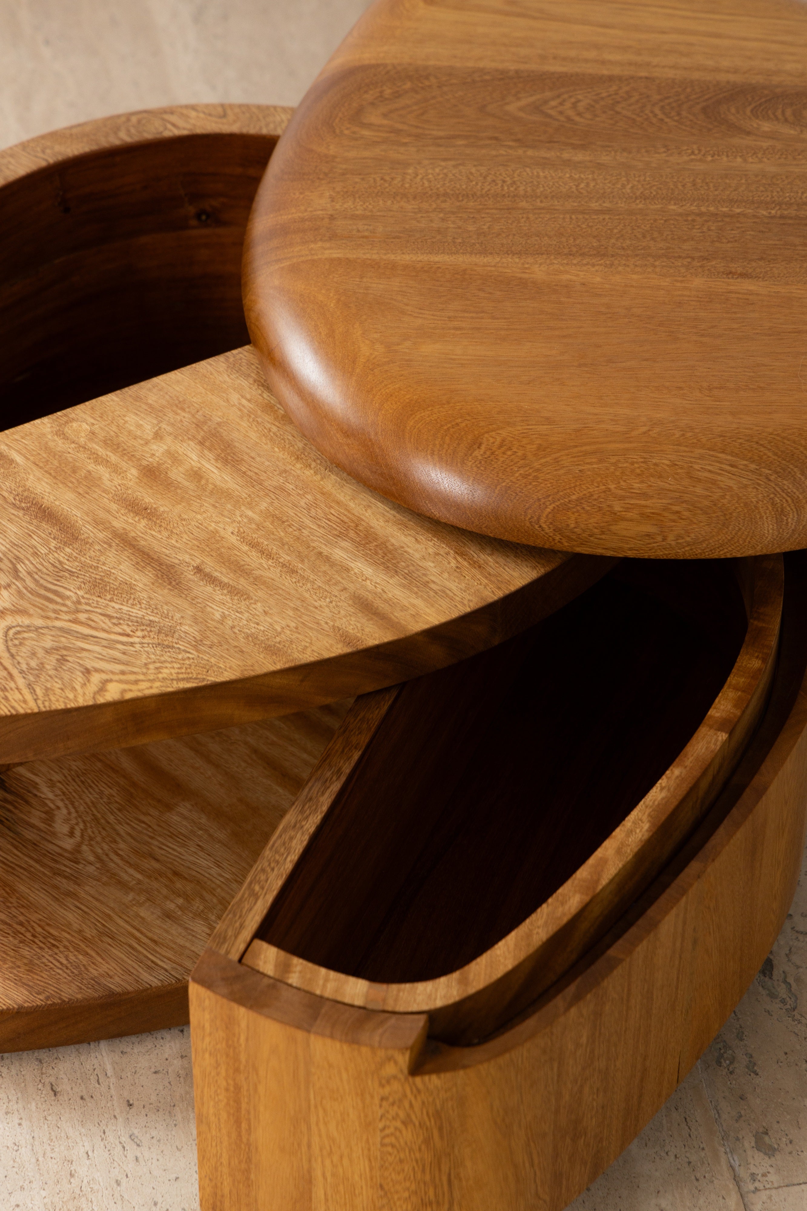 COLMENA brings the logic of the Unfolding collection into a more intimate dimension. Its scale draws the object closer to the user and emphasizes direct interaction, making contact and movement an essential part of the experience. It is a side table and bench that unfolds in two directions.