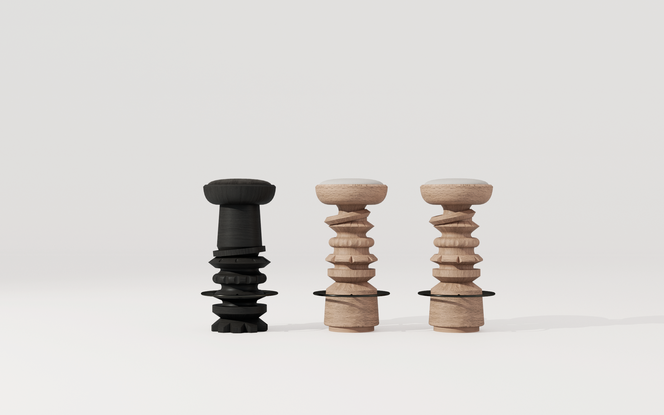 Our Beto Barstool designed by Juan José Nemer and Mauricio Álvarez pays homage to the traditional Mexican method of mixing a chocolate drink. This handmade bar-height stool features an Oak wood base complete with a mohair velvet cushion top for a luxurious finish. See our sister Chabela Barstool for a variation in whitened Walnut.