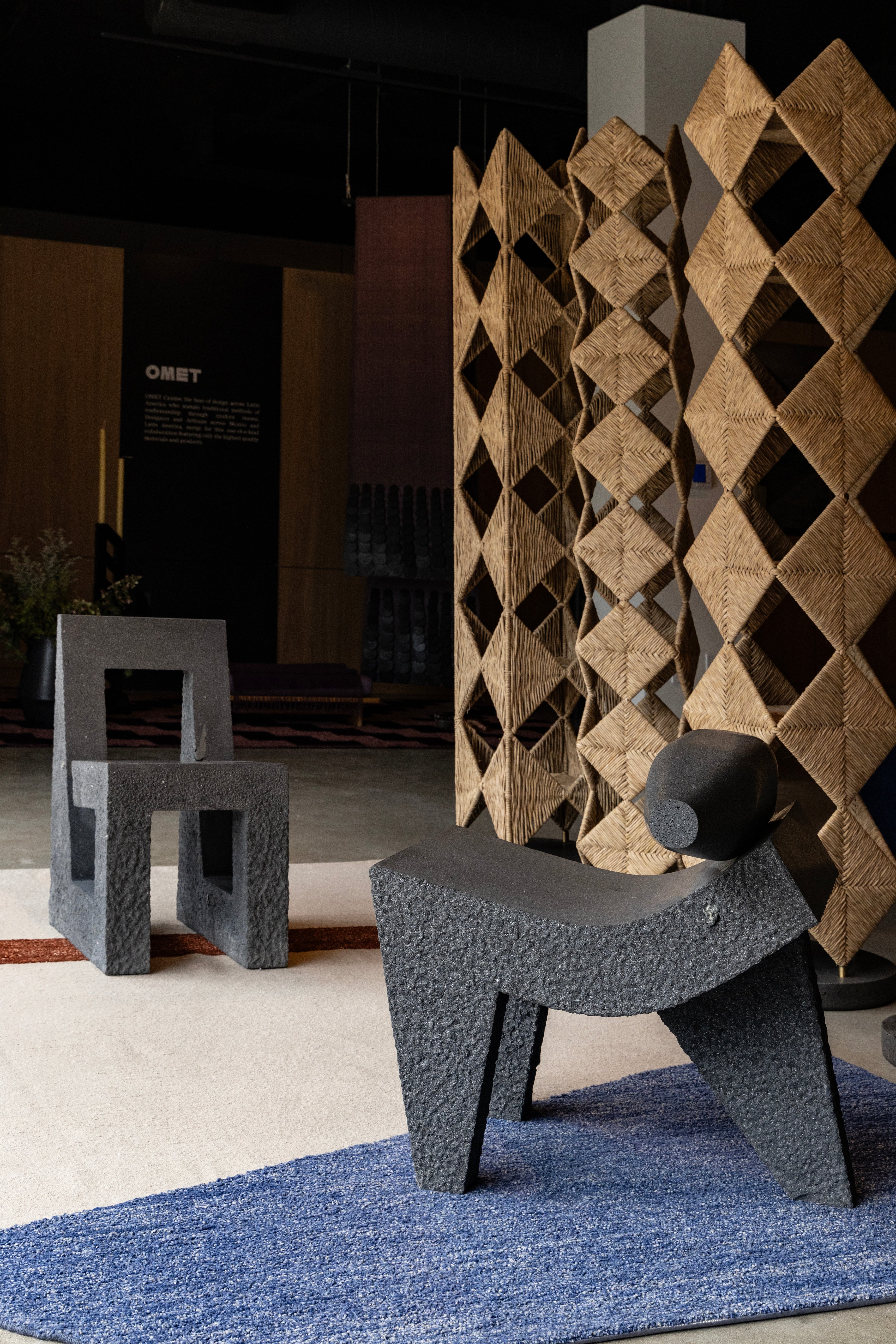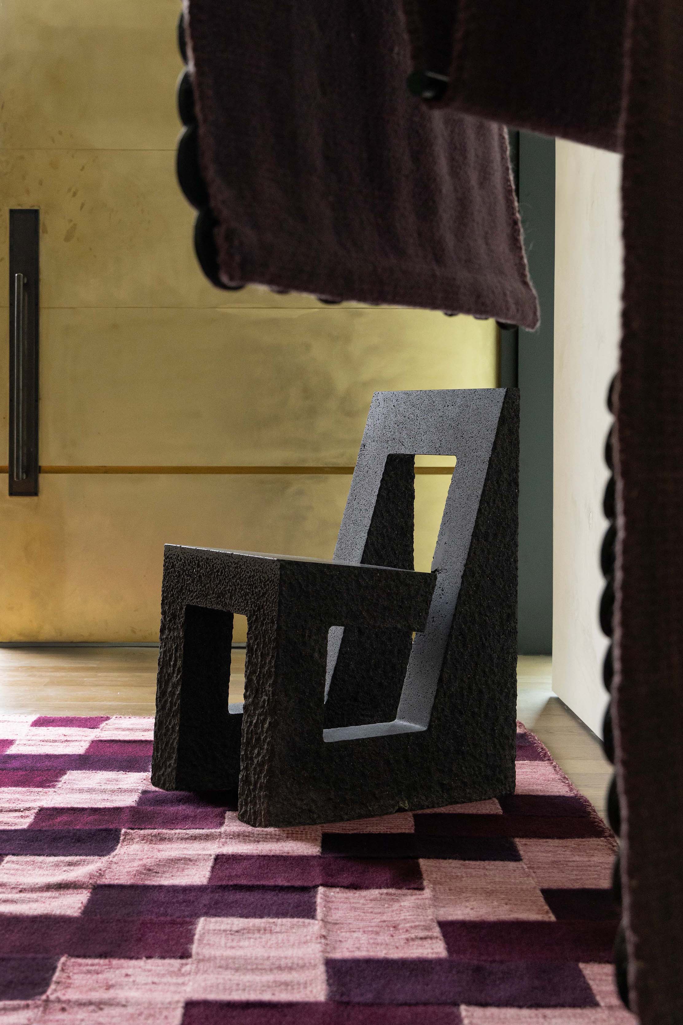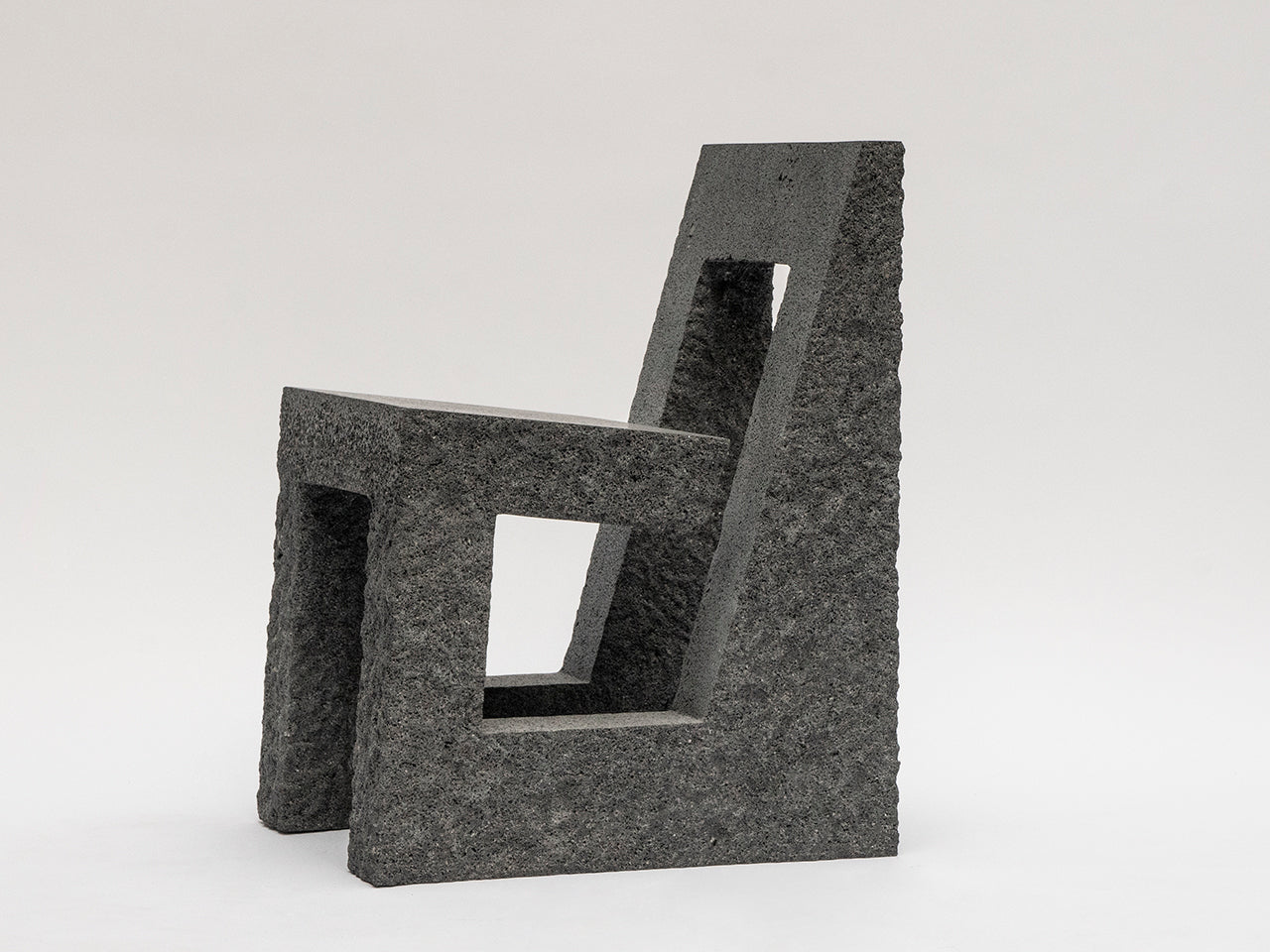 The Greca Chair, 2019, is an abstraction of the virgula or volute, a graphic element of pre-Hispanic iconography that evokes the sound and particularly the word. Sculptor Pedro Reyes' translation into a stony language has been used to emphasize the right angles, finding a balance between gravity and simplicity.
