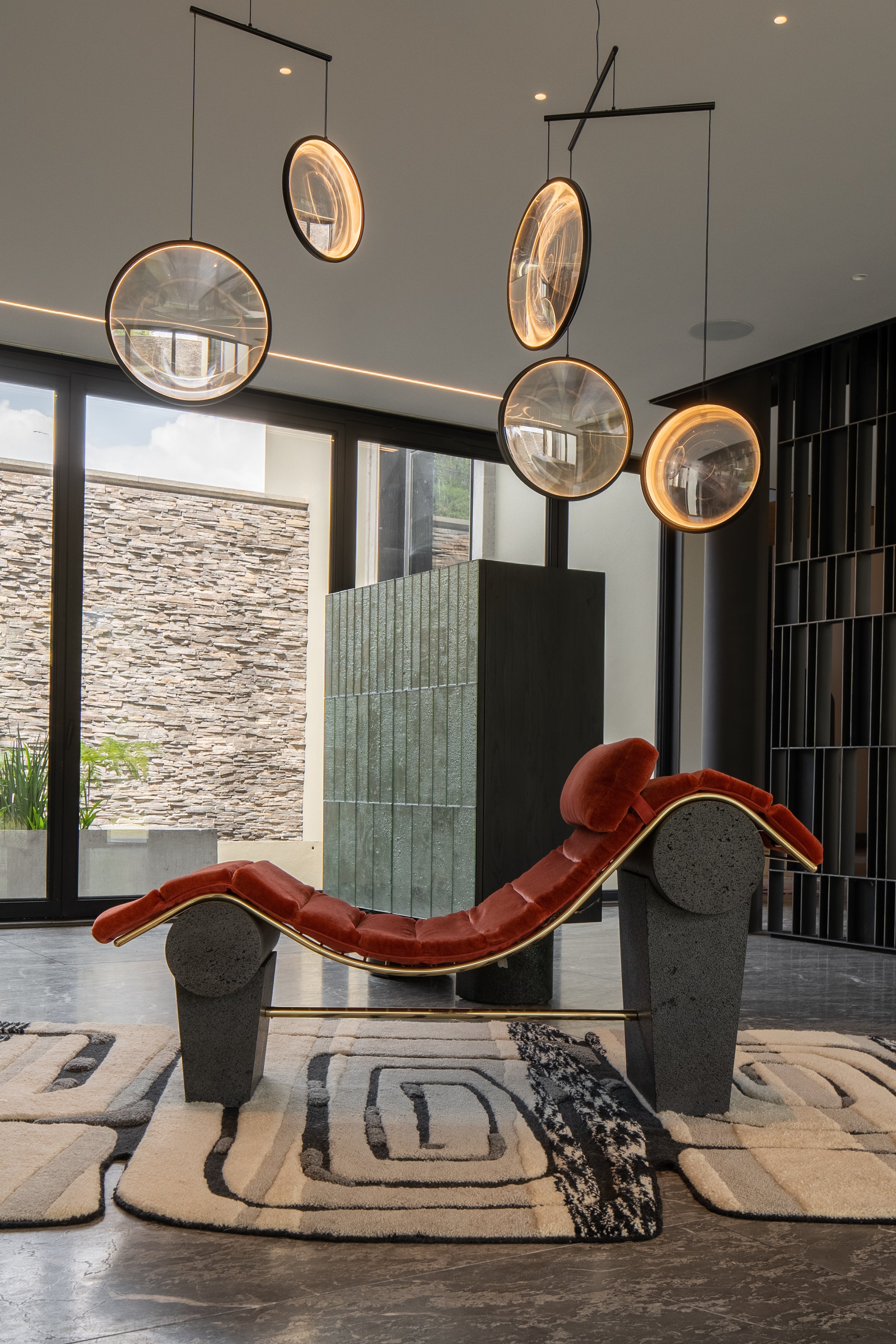 Good design has a significant impact on our well-being, and here, the Luna Chaise Lounge designed by OMET Creative Director Lorena Vieyra represents both form and function, encouraging a place for rest and contemplation. Available in travertine or volcanic stone with countless combinations.