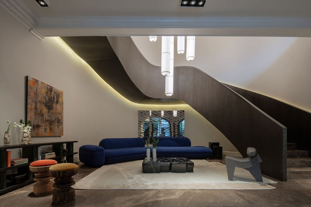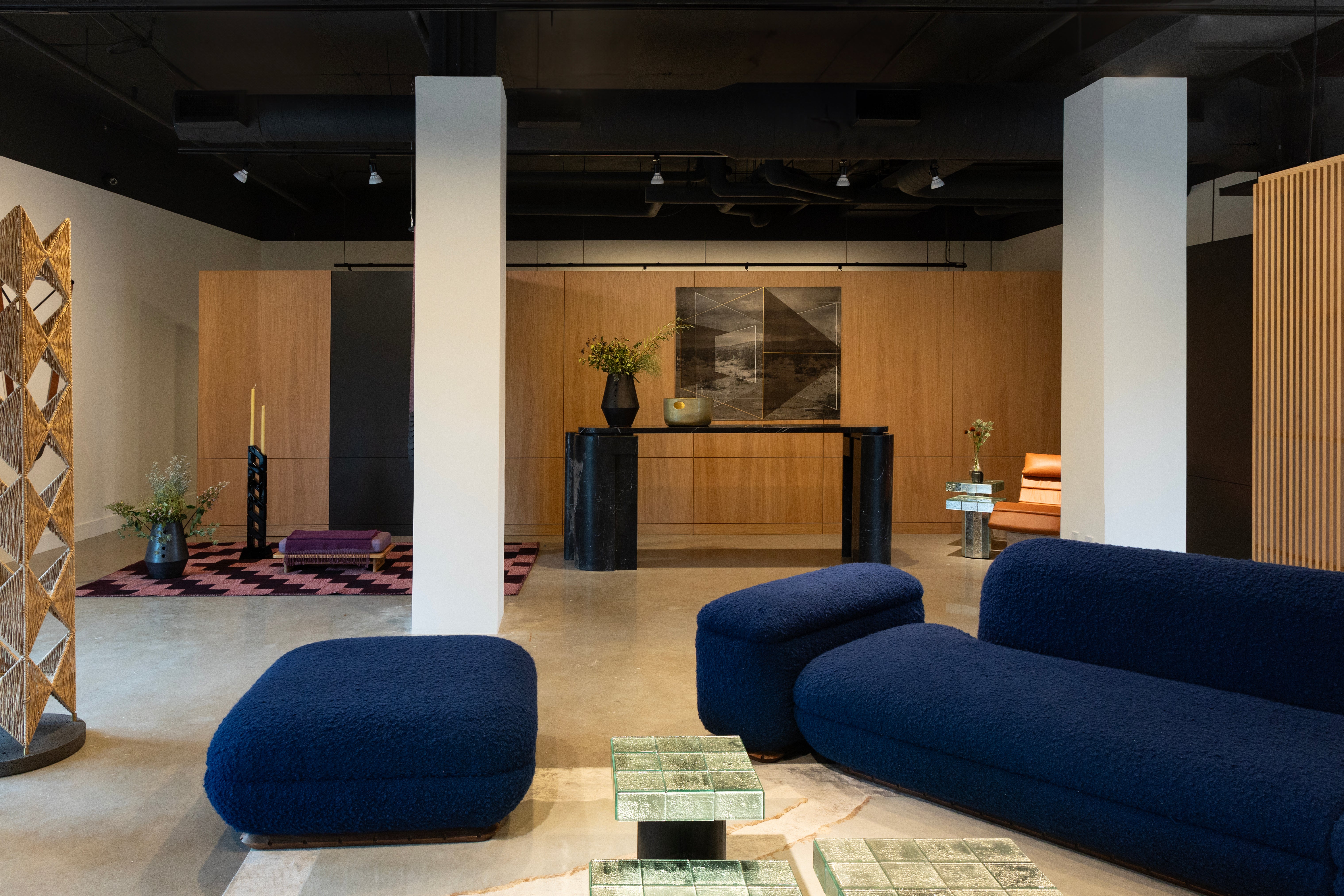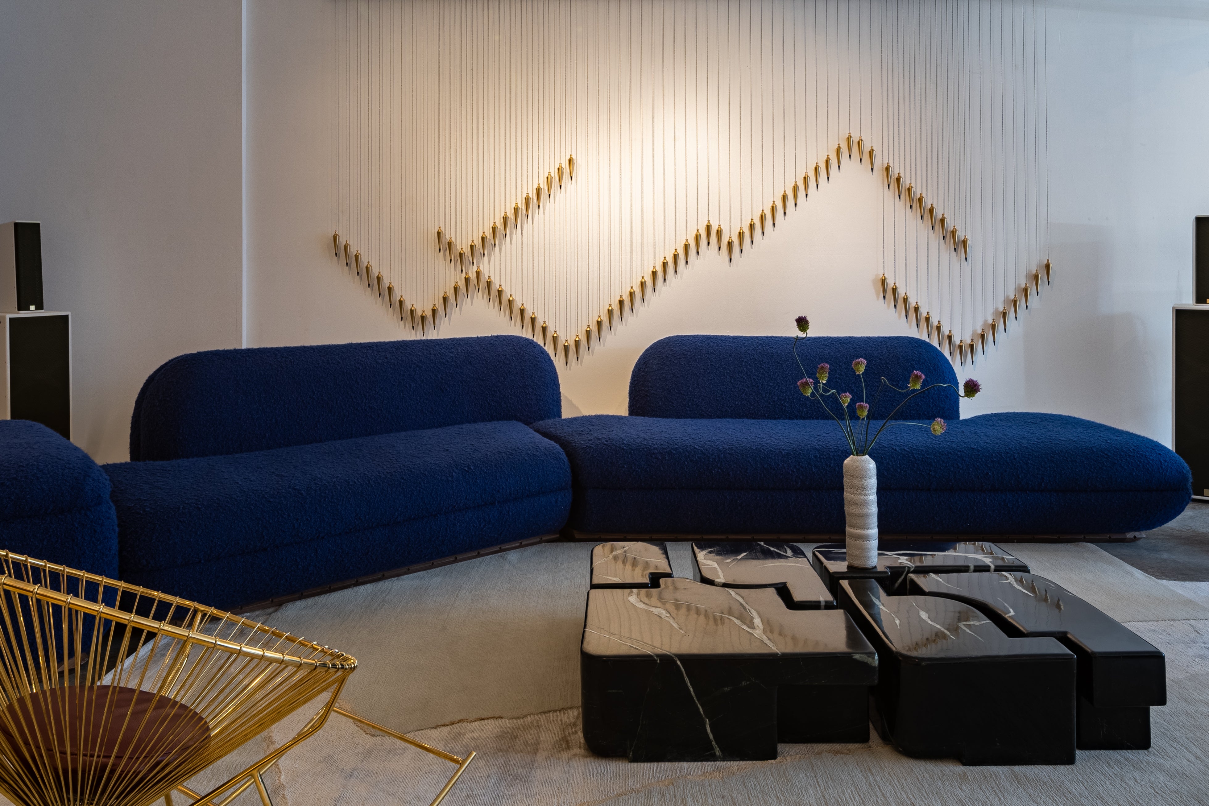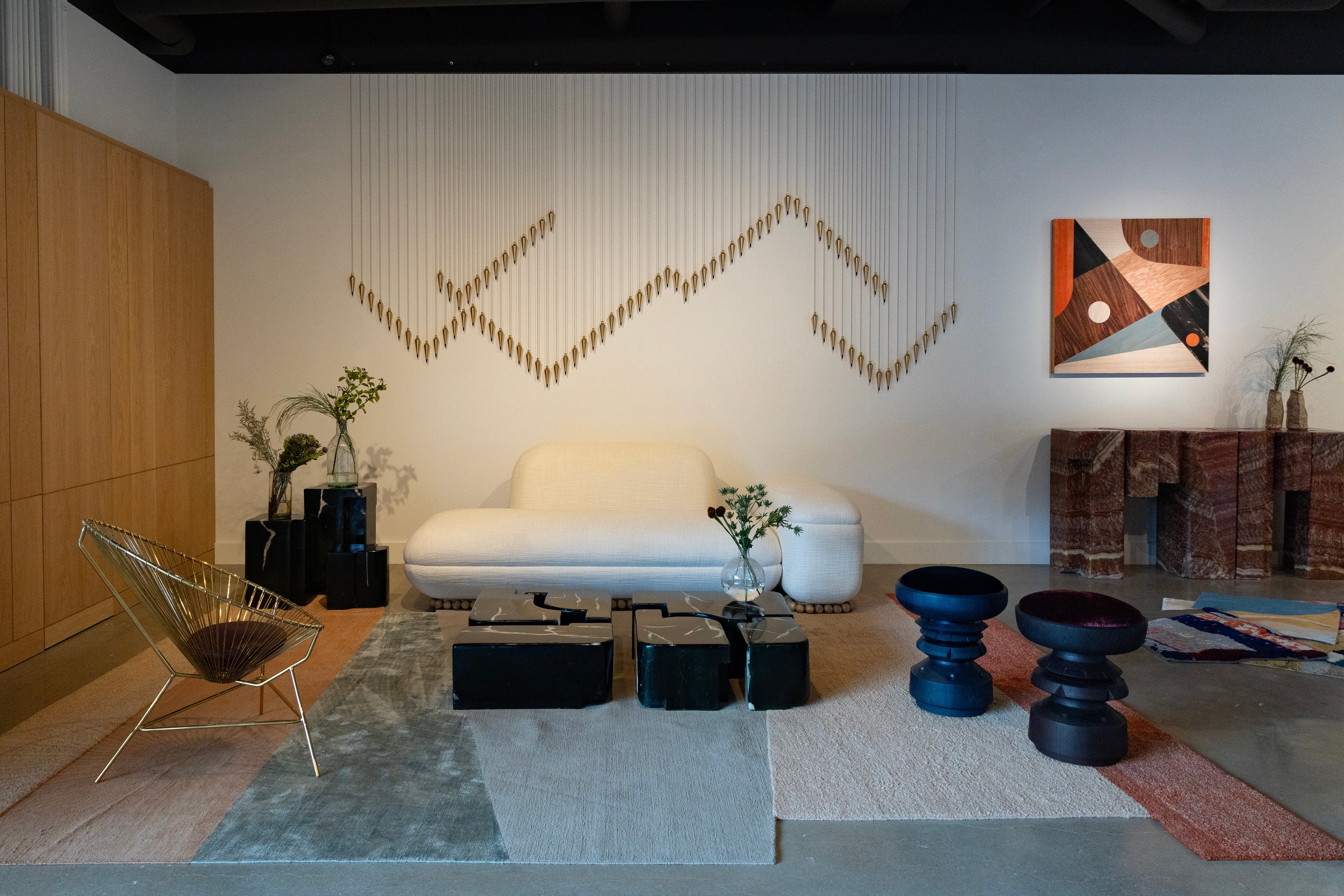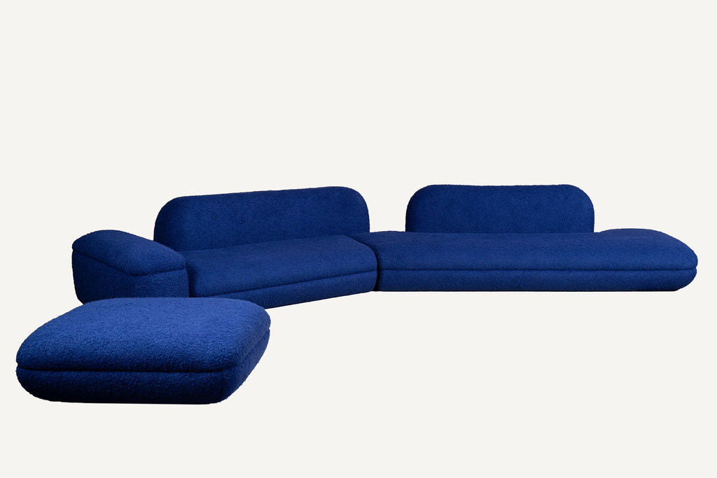 Inspired by the Mexican molinillo and wooden toy making, our Poncho Sofa reinterprets classic tradition by way of cotton bouclé upholstery and Rosa Morada hardwood details. The seat is deep and cozy, yet elegant in design. Can be customized with different bases, sizes, and fabrics. Contact us to learn more.