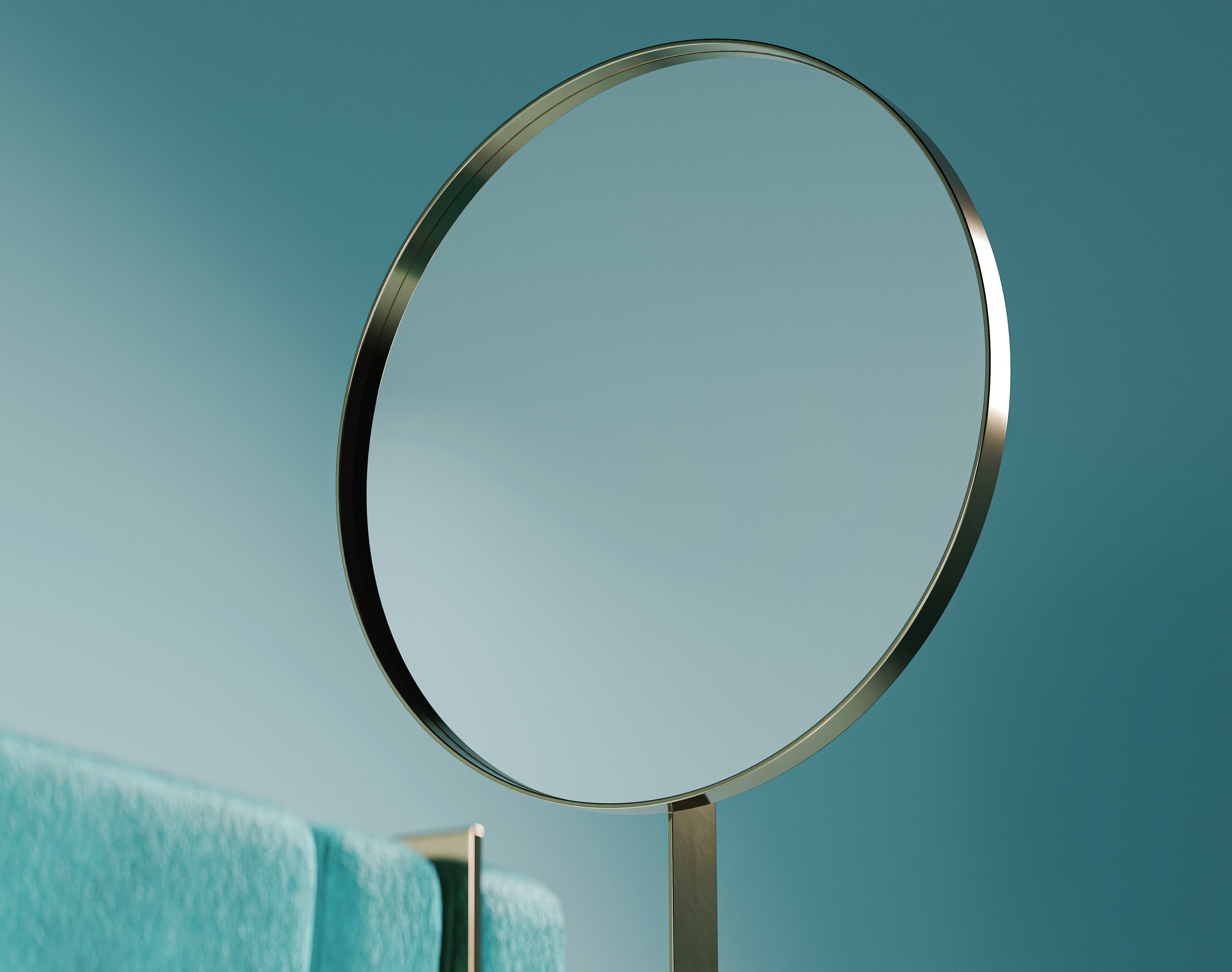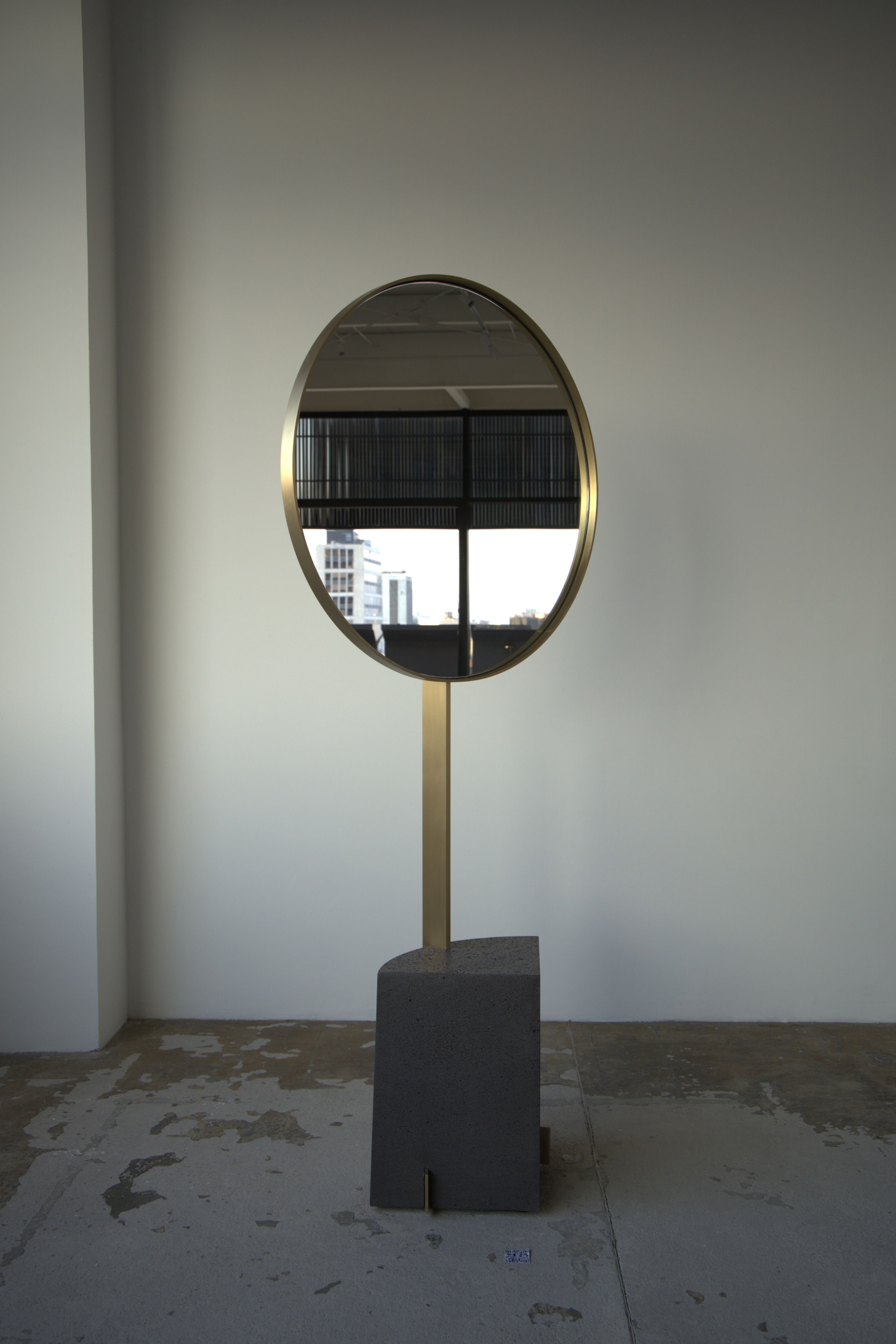 The AUREA mirror features a volcanic stone base and an adjustable mirror, exemplifying form and function to adapt to any space.