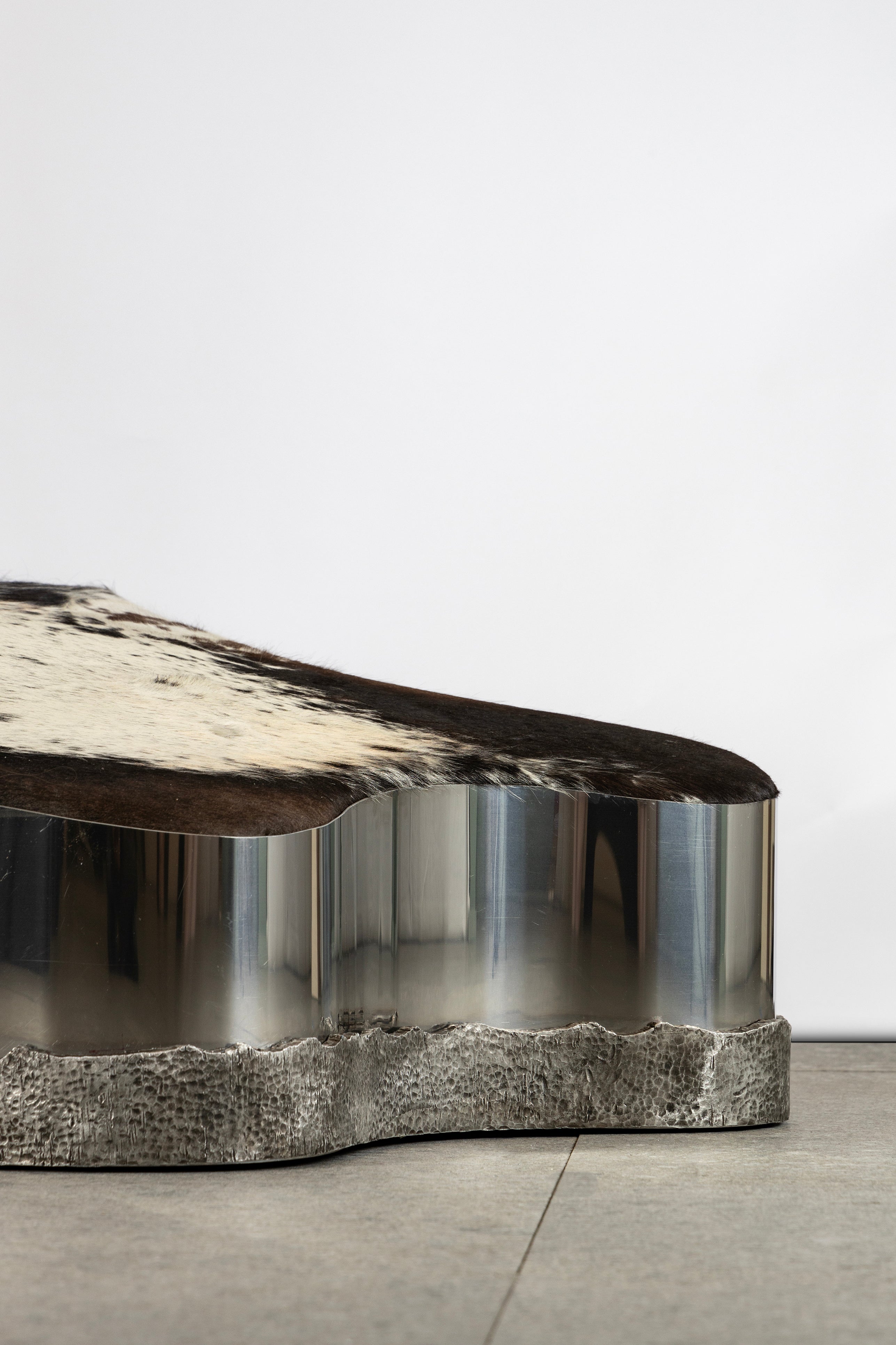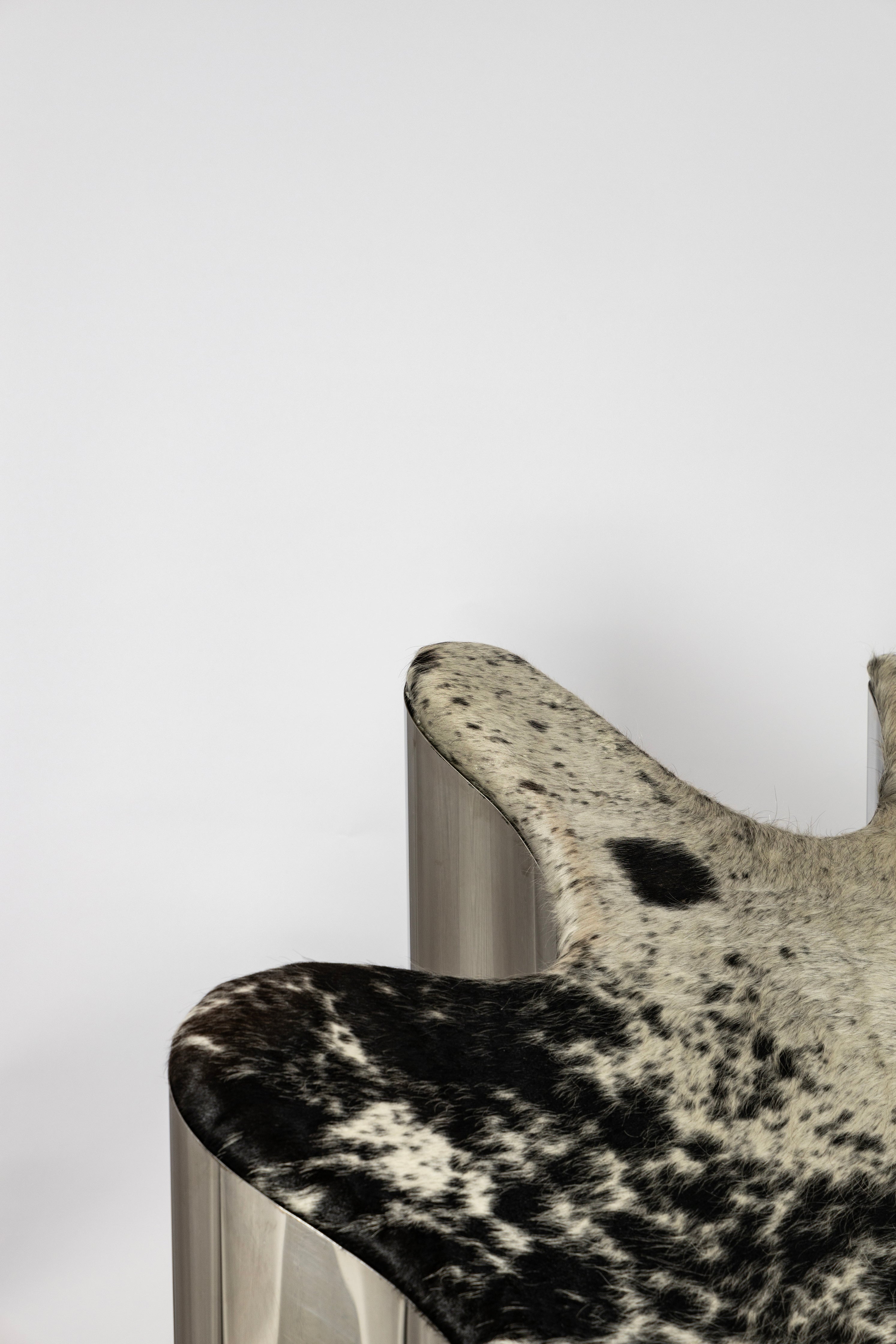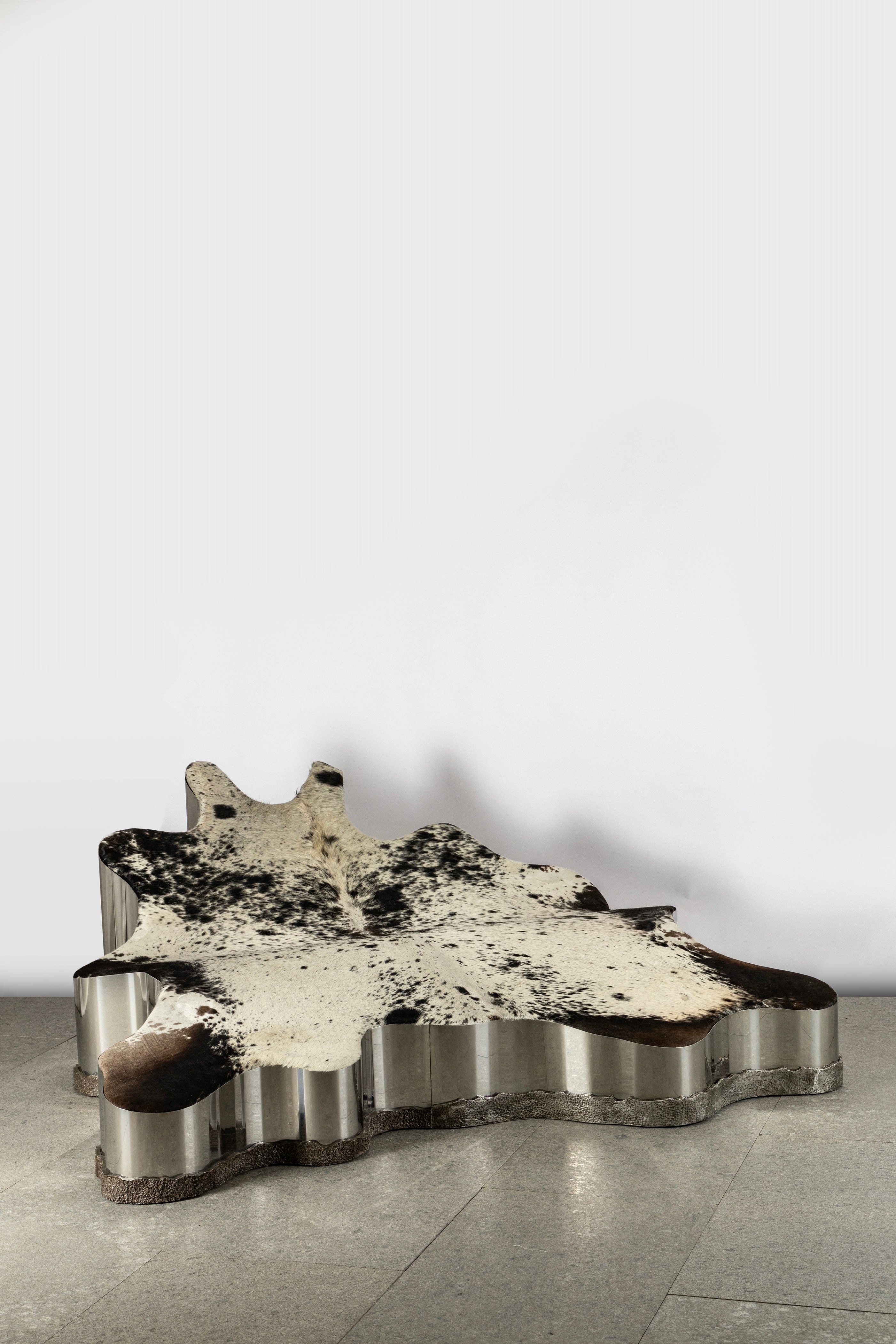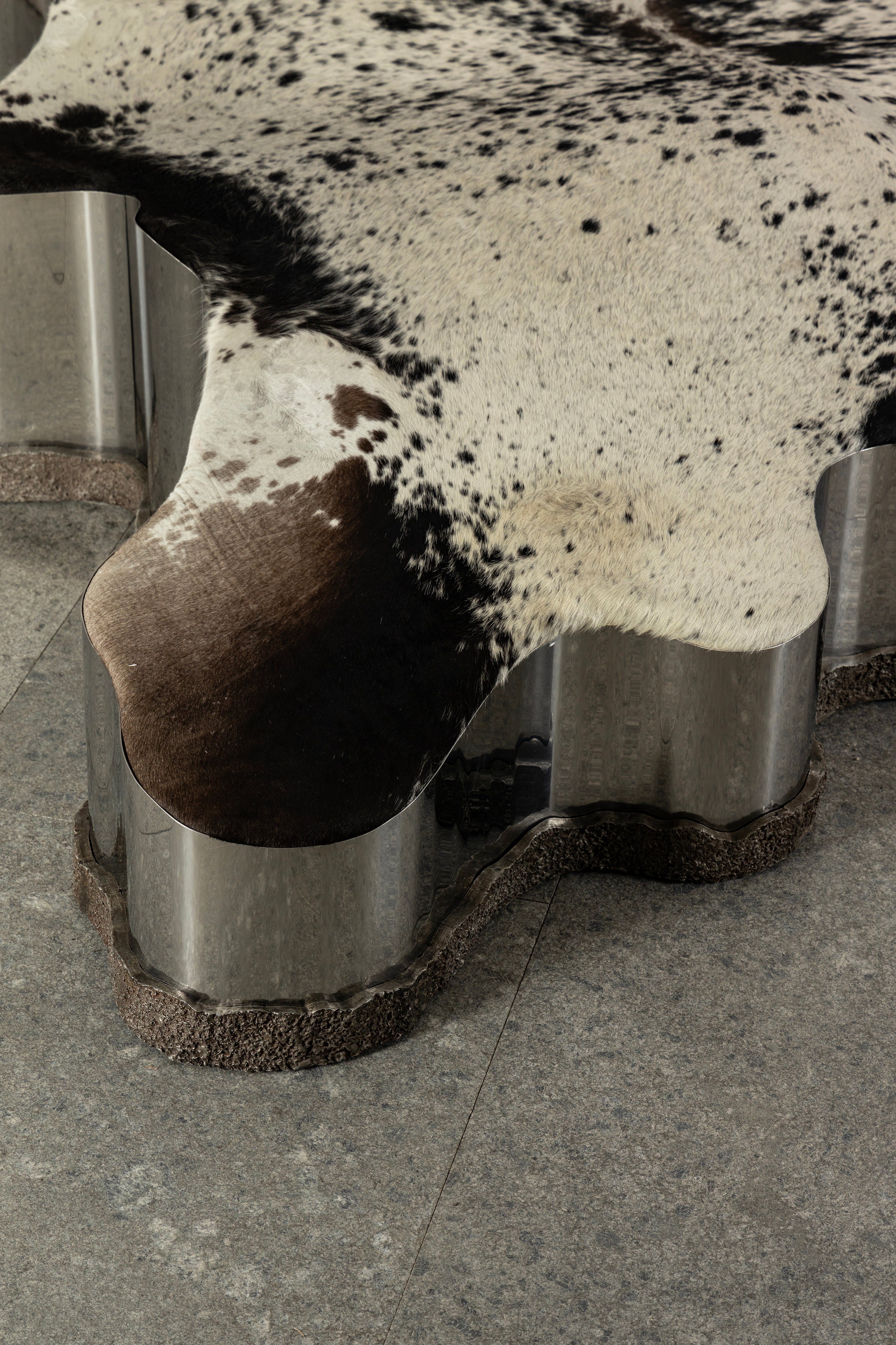“BOT,” conceived by Rojkind Arquitectos in collaboration with OMET, is a commitment to resilience, utilization, and maximization, inviting us to ponder the life cycles of the objects around us. From the lineage of Bos taurus, the cowhide transcends its legacy as a rustic floor element, rising as a resting object that prompts reflection. Each contour narrates the story of what it once was and what it has now become: a homage to sustainable transformation and adaptability.