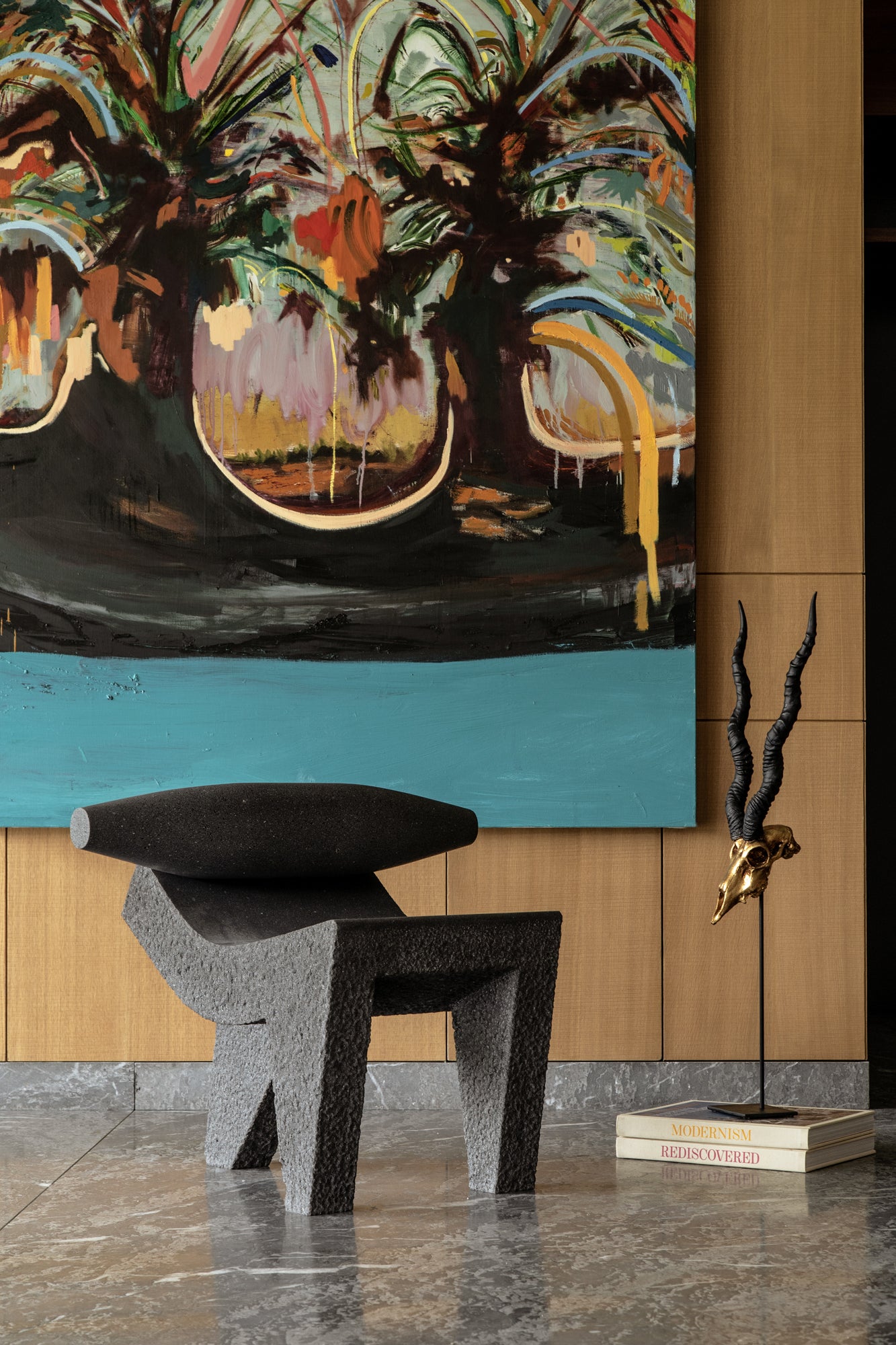 The metate, which like many other pre-Hispanic artifacts is a tripod, is the inspiration for the Metatl Chair by Pedro Reyes.
