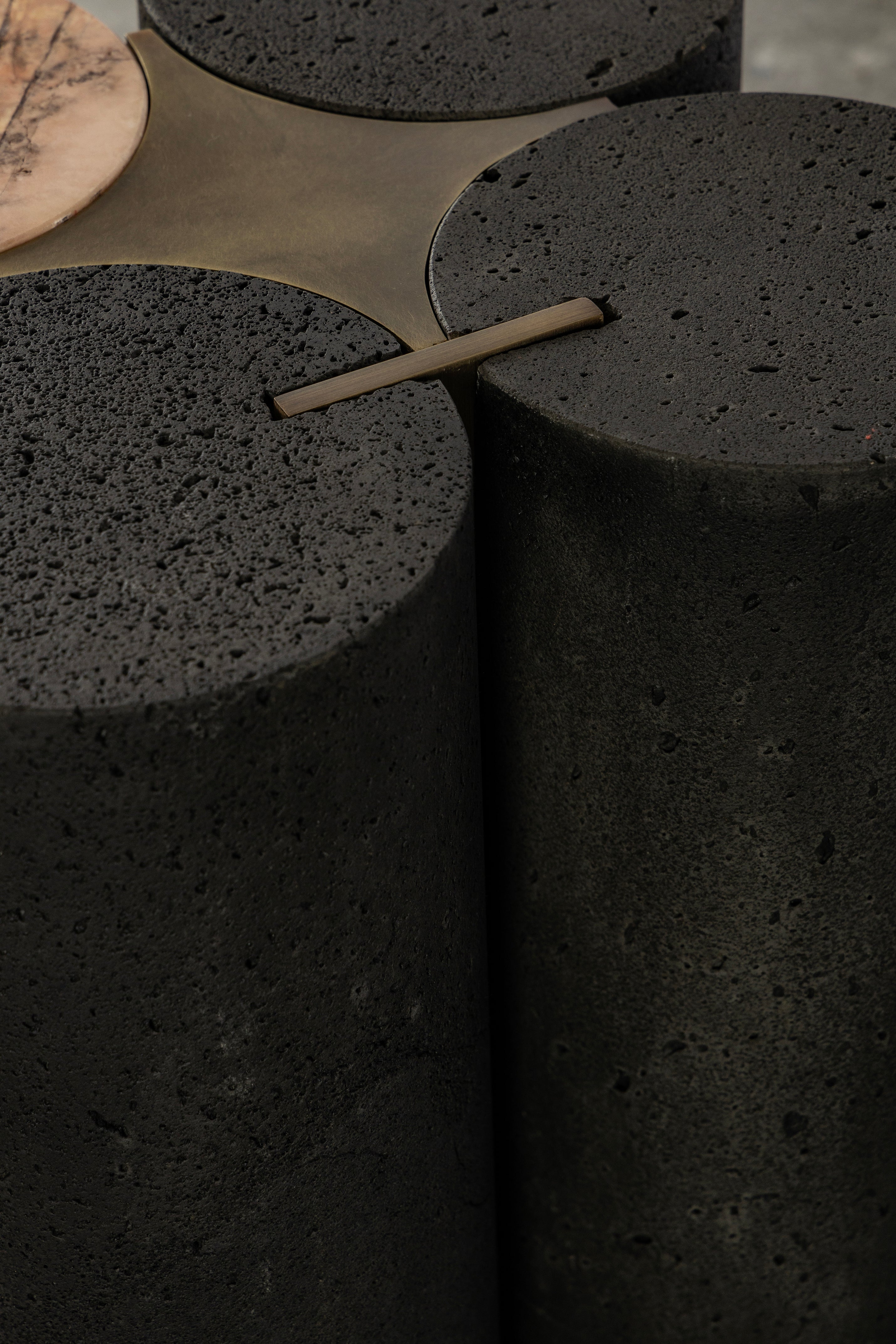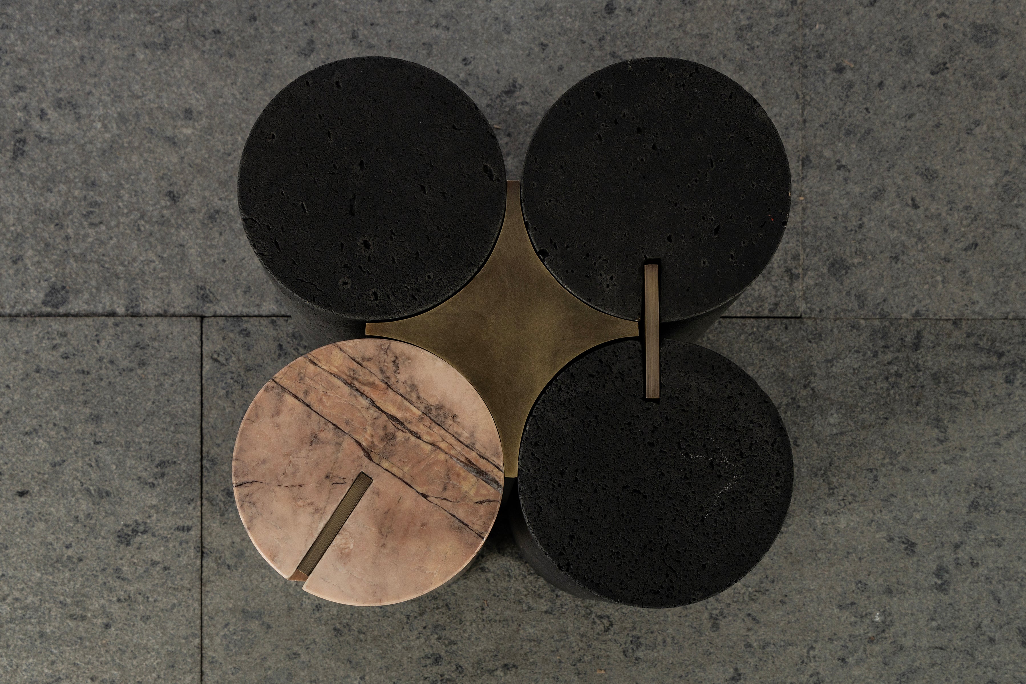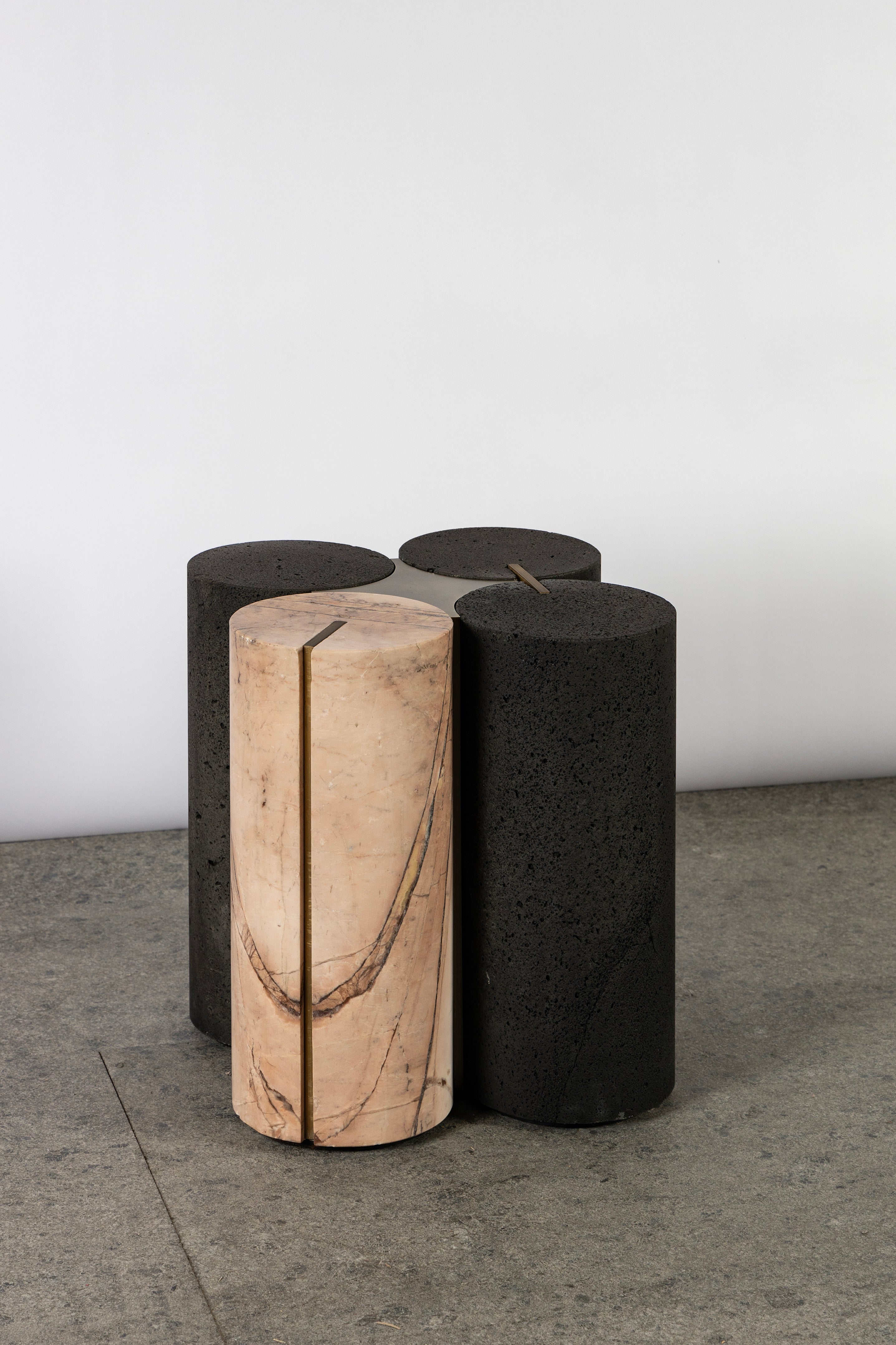 Órbita is a captivating interplay of forms and materials. Vieyra began by working with cylinders in various materials, skillfully assembling them to create unique pieces with intriguing shapes. This concept was further emphasized through the exploration of the weight and lightness in the materiality, demonstrating how these seemingly opposing concepts can harmonize to produce something exceptional. The sculptural stools or side tables were designed to be used according to the user's preferences, and are suitable for placement both indoor and outdoor.