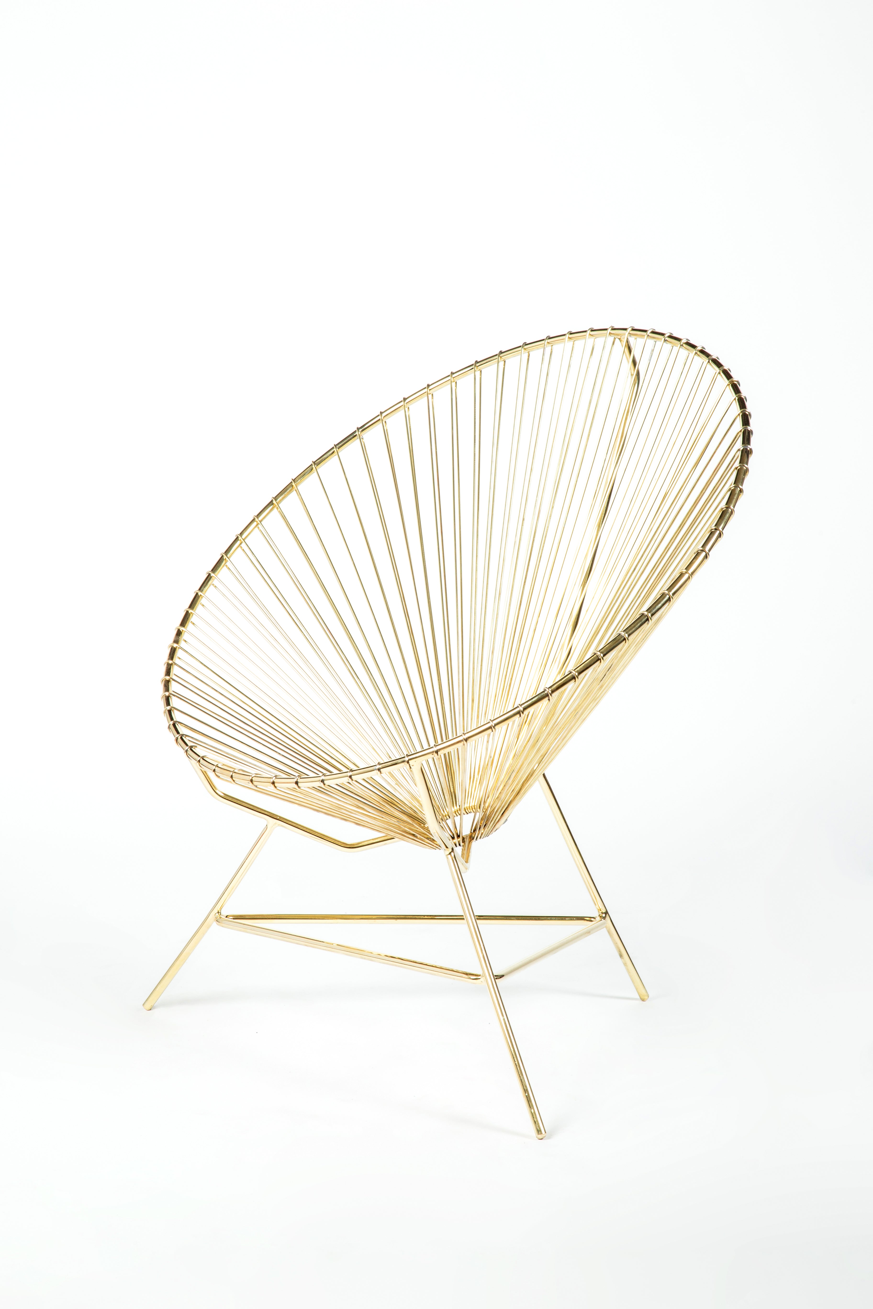 The Sol Chair by Verónica González offers a modern take on the classic Acapulco chair. Solid brass elevates the design, which gives subtle nods to nature.
